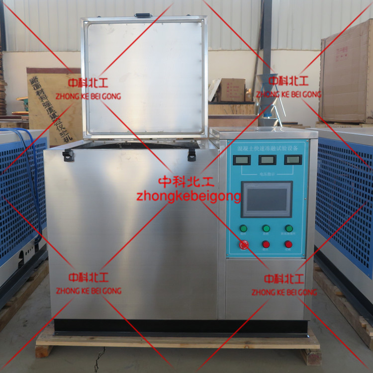 本設備是按照國家電力行業(yè)標準DL/T5150-2001《水工混凝土試驗規(guī)程》中的“混凝土抗凍性試驗”的要求、GB/T 50082-2009《普通混凝土長期性能和耐久性能試驗方法》中的“快凍法”以及美國ASTM/C666《混凝土快速凍融能力的標準試驗方法》設計制造的。能滿足國內(nèi)各相關行業(yè)設計、研究和施工部門對砼快速抗凍試驗設備的要求。