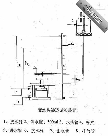 6、試驗(yàn)時,將水頭管沖水至需要高度后關(guān)管夾開動秒表,同時測記起始水頭h1,經(jīng)過時間t后,再測記終了水頭h2,如此連續(xù)測2-3次后,再使水頭管水位回落至需要高度,再連續(xù)測記數(shù)次,前后需6次以上,試驗(yàn)終止。同是測記試驗(yàn)時與終止時的水溫。