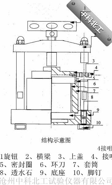 儀器主要由上蓋,底座,套座,環(huán)刀,透水石,螺桿等組成(見示意圖)。
