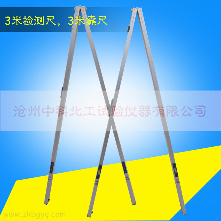 3米檢測尺(3米靠尺)主要用于公路路面的平整度,傾斜度,水平度的檢測。該水平尺由高強度鋁合金制成,合攏后長度為1.5米,展開為3米,兩端裝有2只高精度水平泡,展開使用時應鎖緊鏈接扣。
