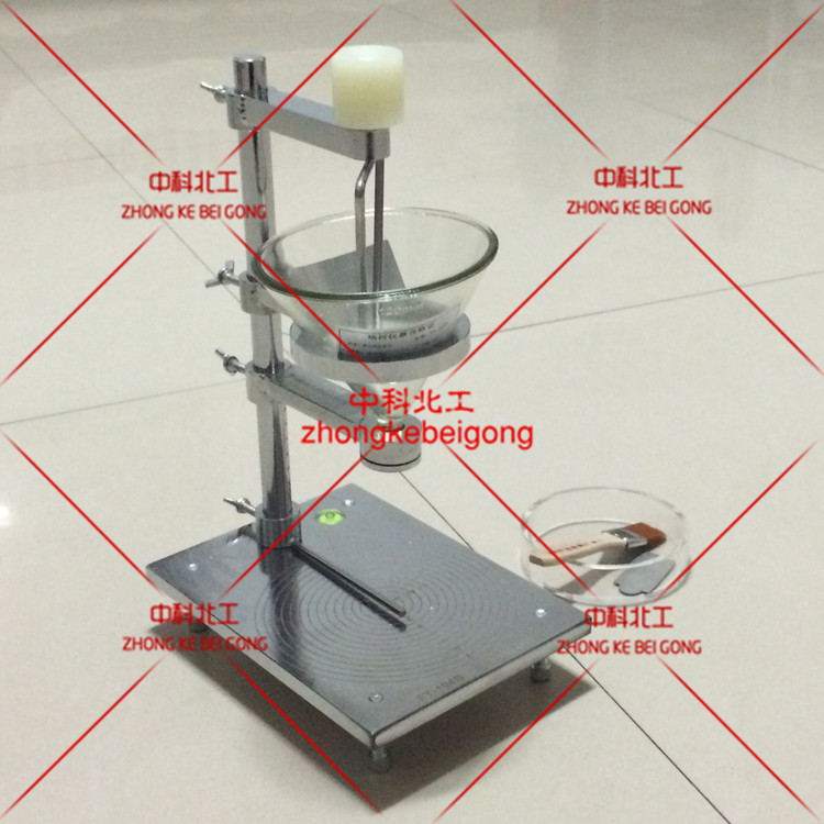 4、調(diào)節(jié)玻璃漏斗下出料口與底板100mm的高度值