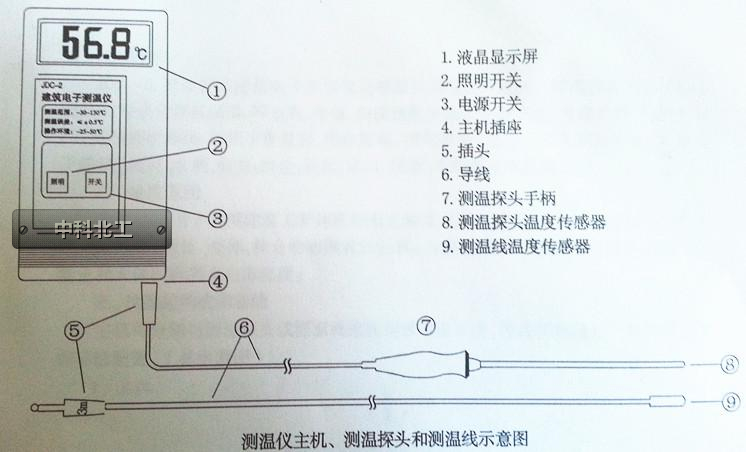 本儀器適用于各類建筑工程的現(xiàn)場施工測溫,與測溫探頭配合可測材料和熟料溫度,如:氣體、液體、流體、拌合物和顆粒狀材料;與預(yù)埋式測溫線配合可測冬期施工混凝土和大體積混凝土內(nèi)部溫度。