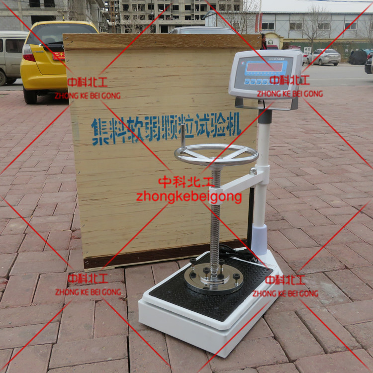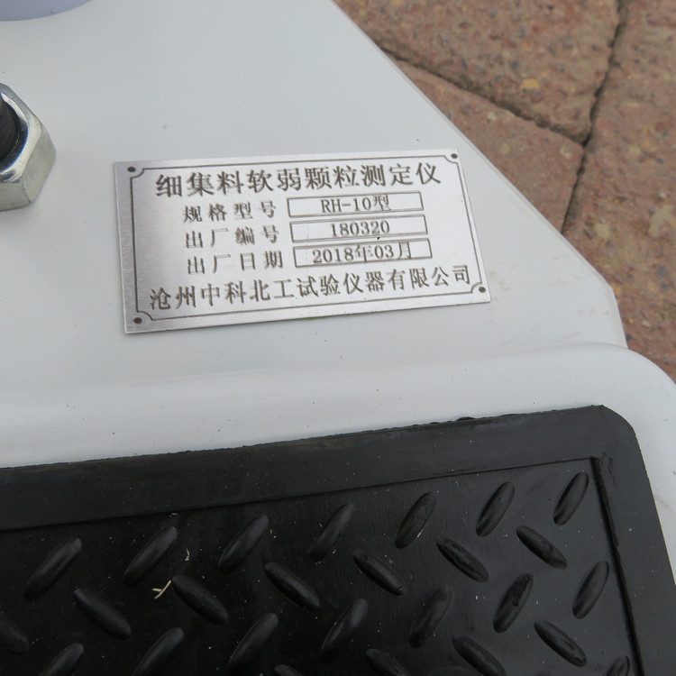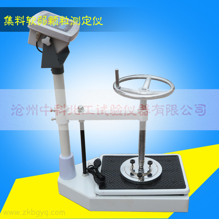 稱風(fēng)干試樣2kg(m1),如顆粒粒徑大于40mm,則稱4kg, 過篩分成5mm-10mm、10mm-20mm、20mm以上(或方孔篩4.75mm-9.5mm、9.5mm-16mm、16mm以上)各1份;將每份中每一個顆粒放在壓力機(jī)平臺中心,按顆粒大小分別加以0.15KN、0.25KN、0.34KN之荷載,破裂之顆粒即屬于軟弱顆粒,將其棄去,稱處未破裂顆粒的質(zhì)量(m2)。