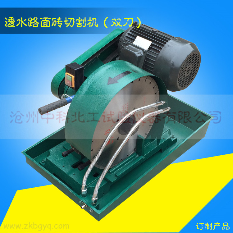 透水磚切割機本切割機是根據普通切割機改進的,依據砂基透水磚的標準制作,具有雙刀同時切割功能,一次切割切出試樣尺寸是10公分,比普通切割機更省時省力。