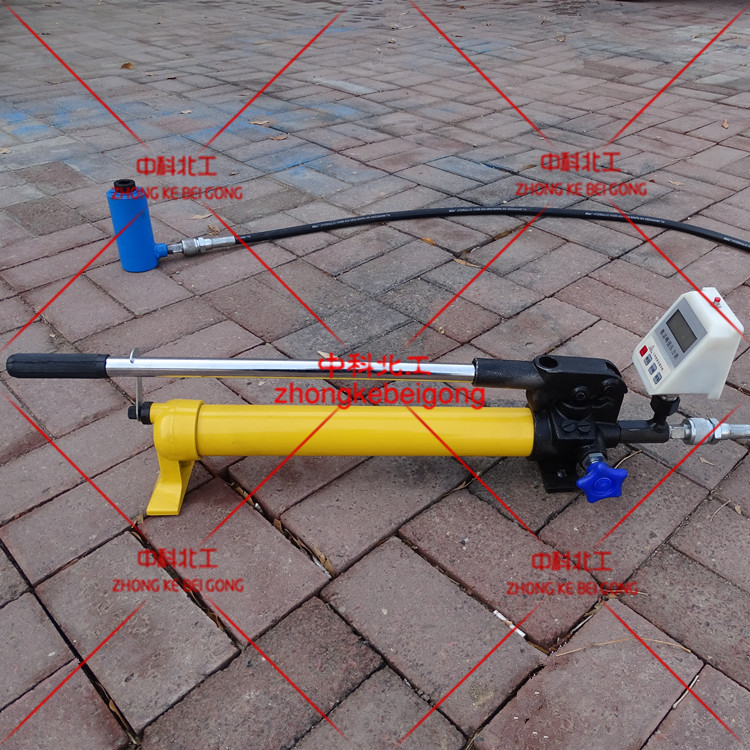該拉力計由手壓泵、液壓缸、壓力表及高壓膠管等部分組成。其中ML-300B型手壓泵為高、低壓雙徑柱塞式設(shè)計,高壓高效,泵體采用精密鑄鋼制造,使用壽命長。液壓缸為中空自復(fù)位式,ML-300B型帶有提把并可通過快速接頭與高壓膠管相接。數(shù)字壓力表讀數(shù)直觀,可直讀錨桿拉力值。該系列拉力計結(jié)構(gòu)緊湊、攜帶方便、體積小、重量輕。