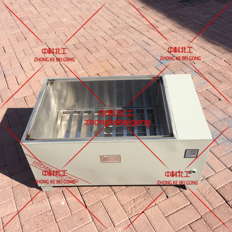 當(dāng)箱內(nèi)的養(yǎng)護(hù)水溫達(dá)到所設(shè)定的溫度后,中.科北.工,關(guān)閉電源,拔出測(cè)溫探頭,操作人員面對(duì)養(yǎng)護(hù)箱正面將箱蓋徐徐打開,開去箱蓋后,用專用工具鉤將試件逐一放在水中擱架上(安放試件時(shí)請(qǐng)留測(cè)溫探頭位置)。試件放好后蓋上箱蓋、插上測(cè)溫探頭、打開電源,水溫很快恢復(fù)到設(shè)置溫度。(在100℃養(yǎng)護(hù)水的升溫時(shí),由于箱內(nèi)水沸騰,短時(shí)期沸水有可能外溢,待進(jìn)入保溫狀態(tài)后,將恢復(fù)正常)。