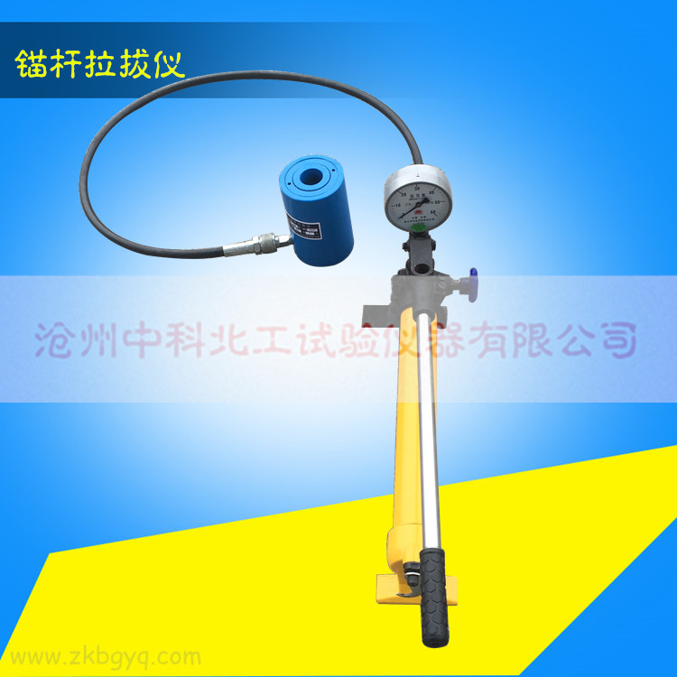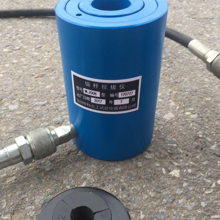 該拉力計由手壓泵、液壓缸、壓力表及高壓膠管等部分組成。其中ML-300B型手壓泵為高、低壓雙徑柱塞式設(shè)計,高壓高效,泵體采用精密鑄鋼制造,使用壽命長。液壓缸為中空自復(fù)位式,ML-300B型帶有提把并可通過快速接頭與高壓膠管相接。數(shù)字壓力表讀數(shù)直觀,可直讀錨桿拉力值。該系列拉力計結(jié)構(gòu)緊湊、攜帶方便、體積小、重量輕。