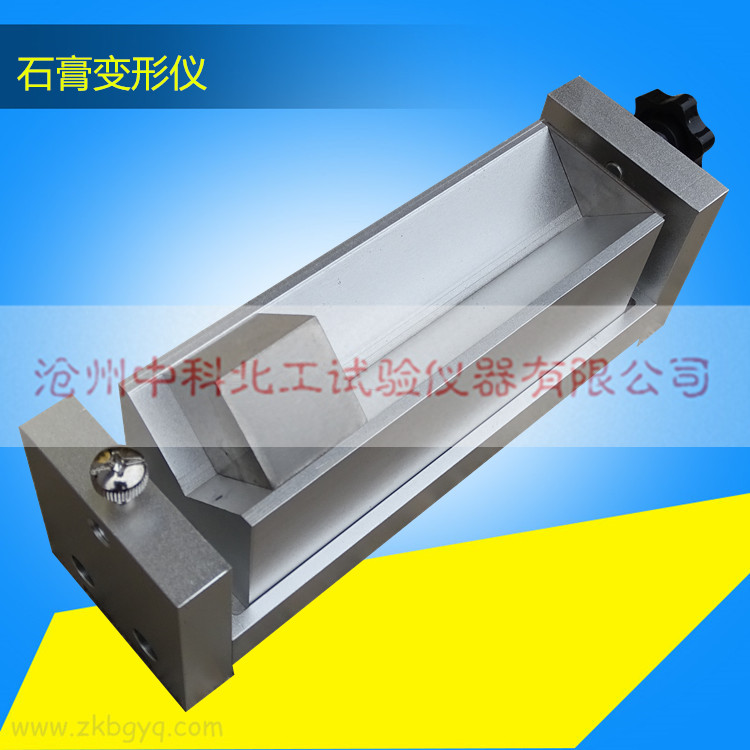 石膏變形測(cè)定儀由數(shù)顯千分表、V形槽、活動(dòng)擋塊及底座組成,槽的一端用固定端板擋住。測(cè)量表當(dāng)測(cè)量時(shí)施加的外力不超過(guò)0.1N(98g)時(shí),能測(cè)定0.01mm以?xún)?nèi)位移的數(shù)值。