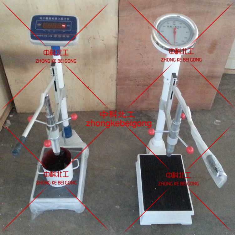 本儀器通過手柄轉(zhuǎn)動(dòng)使貫入針垂直向下運(yùn)動(dòng),當(dāng)貫入針貫入試料模中的砼膠漿內(nèi)時(shí),膠漿對(duì)貫入針產(chǎn)生阻力,此力通過壓力傳感器并由電子數(shù)字顯示裝置(以下簡(jiǎn)稱數(shù)顯器)顯示出來。隨著時(shí)間的增加,砼膠漿的貫入阻力相應(yīng)增加,通過不同測(cè)點(diǎn)測(cè)出相應(yīng)的貫入阻力,獲得混凝土的凝結(jié)時(shí)間數(shù)據(jù)。
