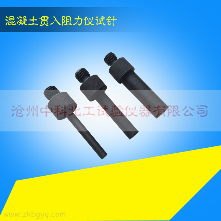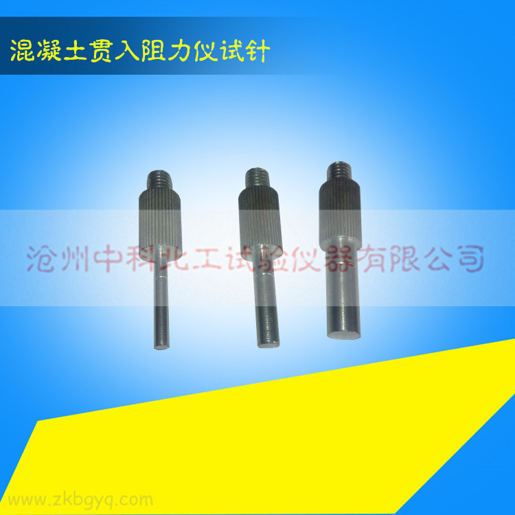 3、選裝上合適的貫入針。350N對(duì)應(yīng)初凝貫入阻力(即2~3.5Mpa,此時(shí)用100 mm2貫入針);1000N對(duì)應(yīng)中間貫入阻力(即3.5~20Mpa,此時(shí)用50 mm2貫入針);560N對(duì)應(yīng)終凝貫入阻力(即20~28Mpa,此時(shí)用20mm2貫入針)。