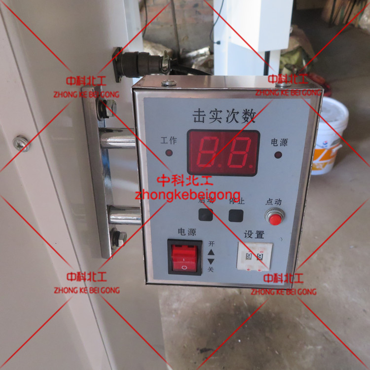 根據(jù)使用試模的內(nèi)徑大小,可以將工作臺前的M16螺栓的鎖緊螺母先松開后,將落錘放入試桶內(nèi),然后調(diào)整M16栓,調(diào)制錘的外徑與試筒內(nèi)徑,相應(yīng)的距離即可,然后將M16螺母鎖緊,開機前先用人工提放一下齒條,確認(rèn)試桶邊緣不受擊實為準(zhǔn),方可開機工作。