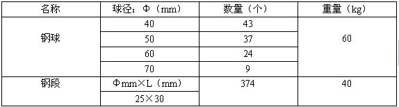 4、研磨體級配和數(shù)量:用戶選配(見表)