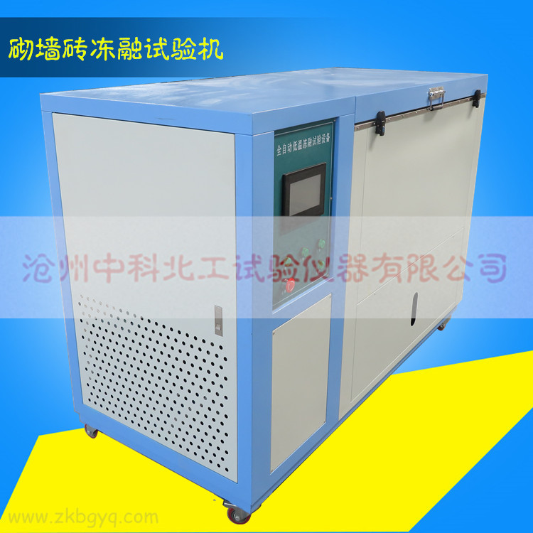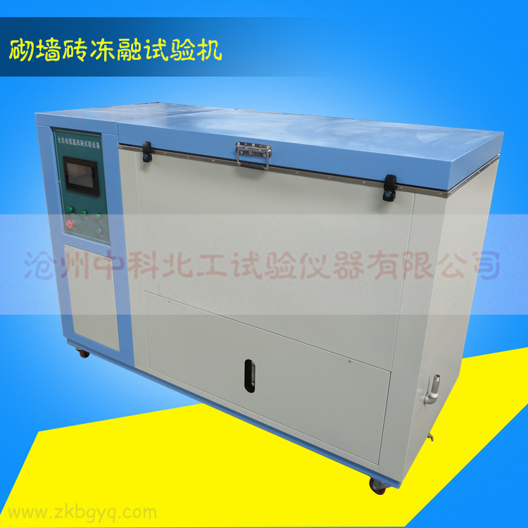 該機(jī)可用作混凝土慢凍法、砌墻磚混凝土空心砌墻磚、加氣砼等建材的凍融試驗設(shè)備。該機(jī)采用空氣中凍結(jié)、水中融化的方法進(jìn)行周期性的凍融試驗,試驗時具有自動化程度高,一次設(shè)置能自動完成多次凍融循環(huán)試驗的功能,該機(jī)采用液晶屏顯示中文界面,儀表自動控制,可實現(xiàn)冷凍溫度、冷凍時間、水溶時間及凍融轉(zhuǎn)換的全過程自動運(yùn)行,同時對每個循環(huán)進(jìn)行記錄,是目前建材凍融試驗的理想設(shè)備。