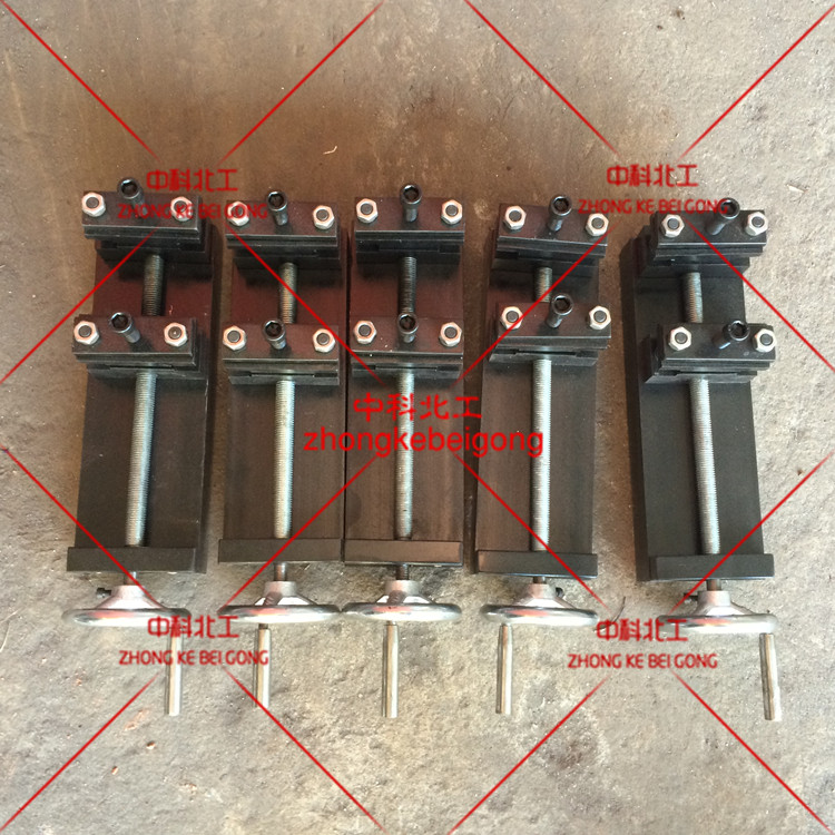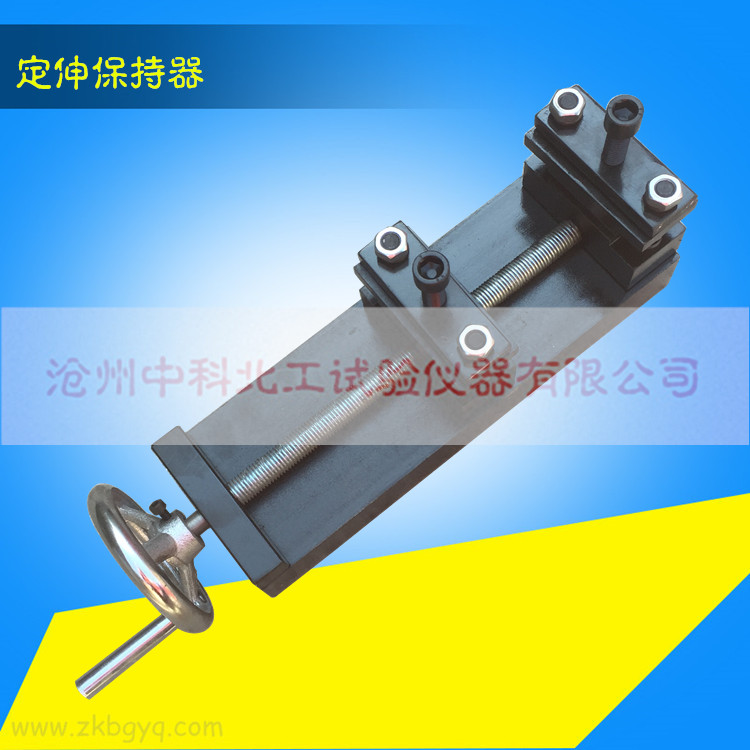 定伸保持器主要由滑動軸承座、滑動夾具、絲桿、固定夾具及底座五部分組成。轉動螺栓,螺栓推動活動夾板向下運動,使試件夾緊。當拉伸試件時,轉動手輪,使絲桿旋轉,從而使滑動夾具沿絲桿移動,來實現(xiàn)對試件的拉伸。