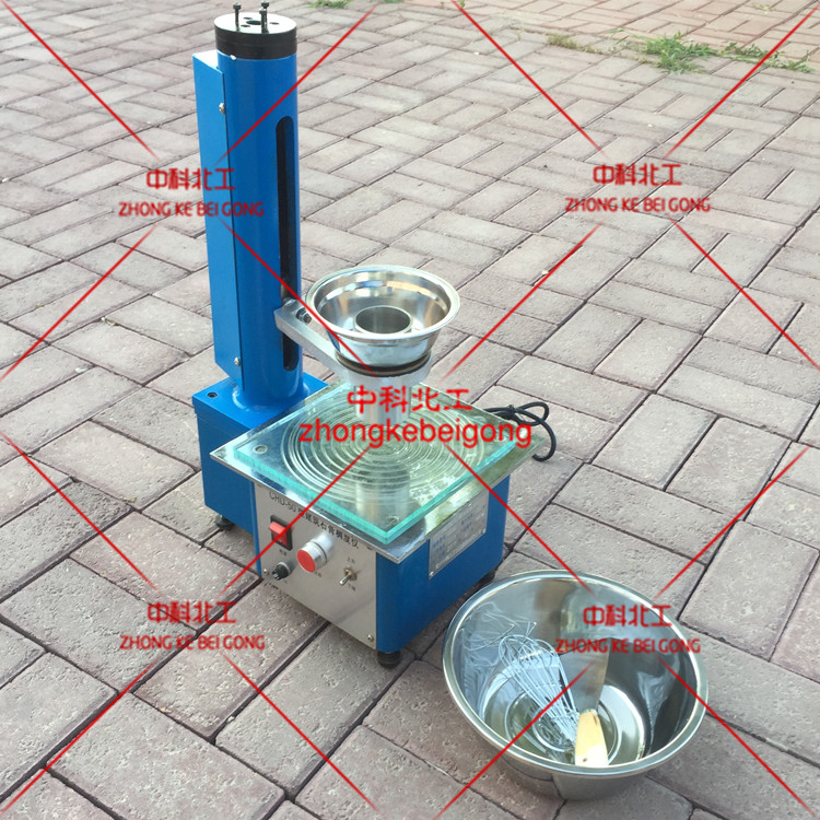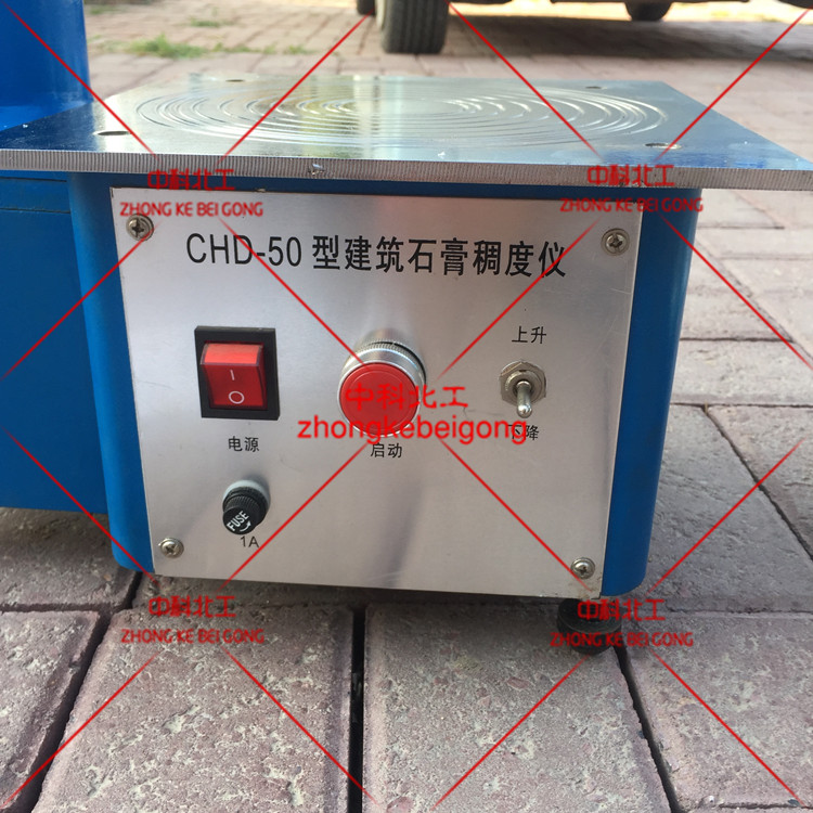 2、稠度測量部分:底座:其左半部是電機座:右半部是電器箱上部是由工作臺(其上面覆蓋著刻有一組從60到200的同心圓的鋼板)玻璃板和稠度筒組成。