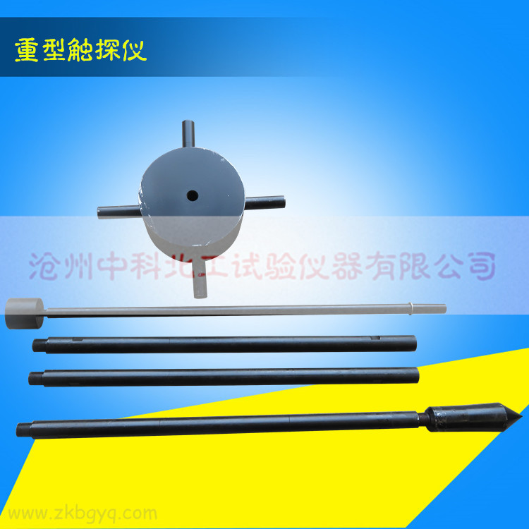 重型觸探儀主要由觸探頭、觸探桿、穿心錘三部分組成,觸探桿一般采用直徑42mm無縫鋼管制成,穿心錘重63.5kg(全鋼制作),觸探桿有刻度標記。