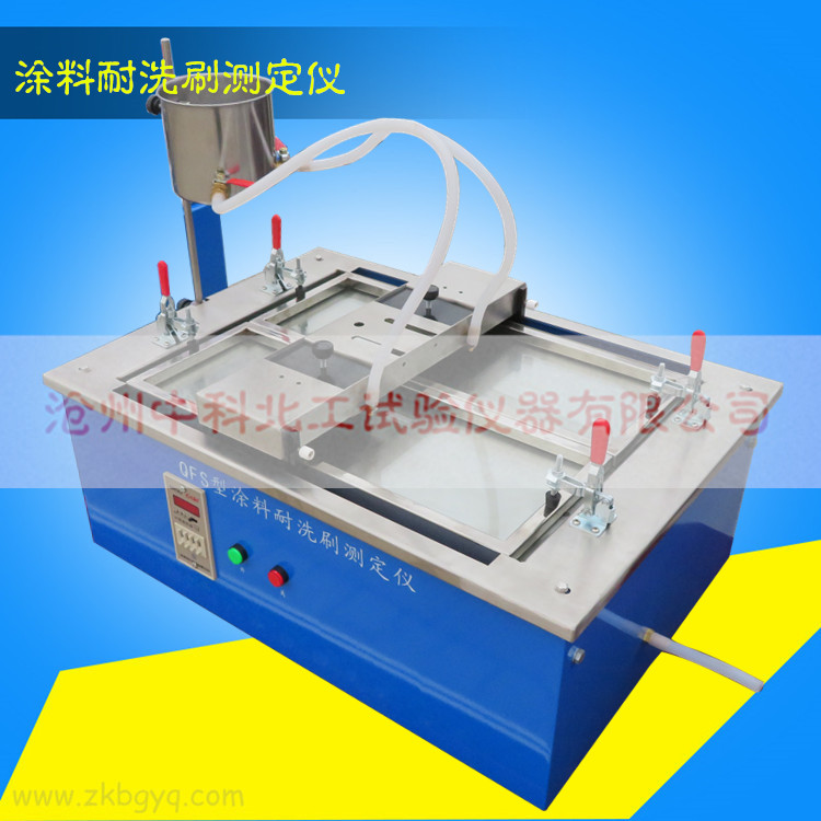 一、用途:涂料耐洗刷測定儀是用于評價涂料耐洗刷性能的儀器。還能評價任何薄膜復(fù)合處理過的表面。如油漆、電鍍、底板、罩面層、木材密度等形式的表面性能,該裝置對涂刷與標準試板上的涂層進行洗刷,洗刷次數(shù)可由計數(shù)器直接讀出。根據(jù)耐洗刷的次數(shù),可評定涂料耐洗刷性能。本儀器與國家標準GB/T9755-2014配套使用,是涂料生產(chǎn)廠家和涂料研究部門必不可少的檢測儀器。