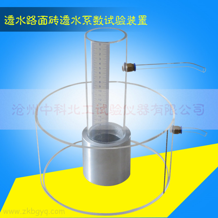 透水磚透水系數(shù)測(cè)定儀,是由蓄水筒,試樣連接密封件,溢流水槽,量筒等組成。在溢流水槽與蓄水筒的某一高度上的側(cè)面上安裝有溢流管,蓄水筒底部安裝有便于拆裝的試樣連接密封件。便于拆裝試樣。