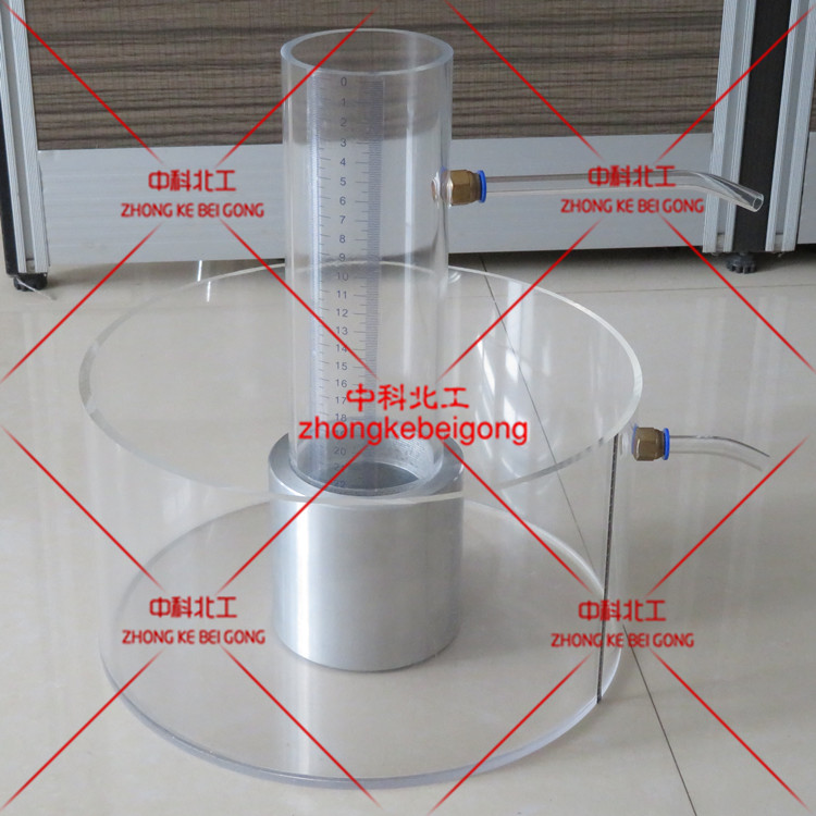 將試件周抹上密封材料或黃油裝入金屬套筒內(nèi)(注意:試件上下表面不能接觸密封材料),等密封材料固化后放入真空裝置內(nèi),保持一定的時(shí)間后,放入溢流水槽,在蓄水筒加注無(wú)氣水至溢流水槽溢流口有水流出時(shí),保持一定水位,待穩(wěn)定后,記錄五分鐘的流水量。