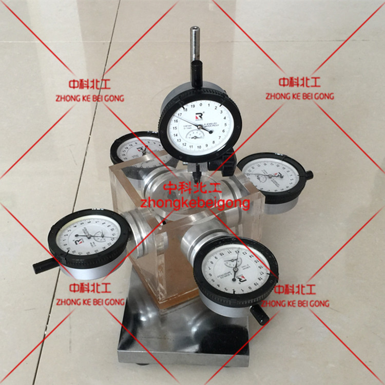 2、在試件上部和四側(cè)對(duì)稱的中心部位分別安裝千分表。四側(cè)千分表與試件接觸,宜放置在塊薄銅片。